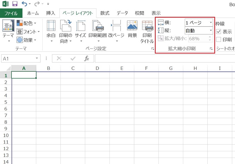 設定しているのは、上のメニューの「ページレイアウト」の「拡大縮小印刷」の箇所です。