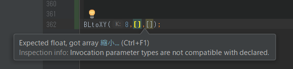 エディタによっては下図の様にPHPDocで指定された型と引数の型が異なる場合、警告を出力してくれます。