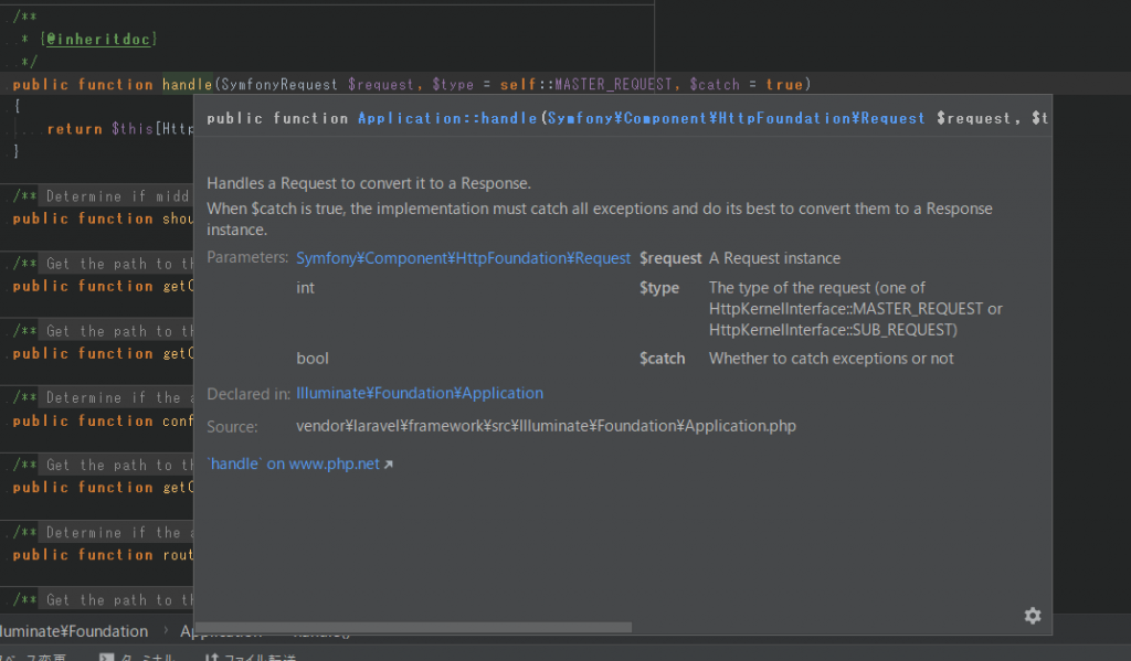 元の振る舞いと継承後の振る舞いに大した違いが無い場合、同じ説明を記述することは面倒です。@inheritdocを使うことで何度も同じ記述を行わず済み、楽が出来ます。