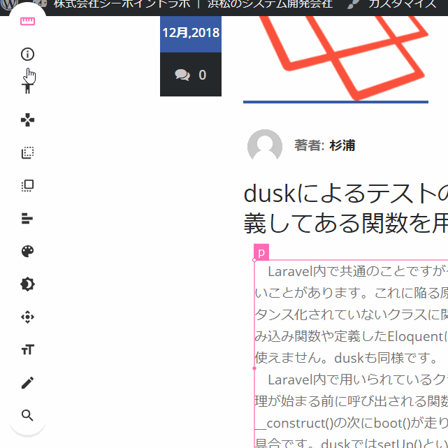 VisBugの大部分はページの見た目をその場で編集する機能(要素の配置、マージンやパディングの調整、テキストの変更、影の付与など)ですが、詳しい情報を見る機能もあります。
