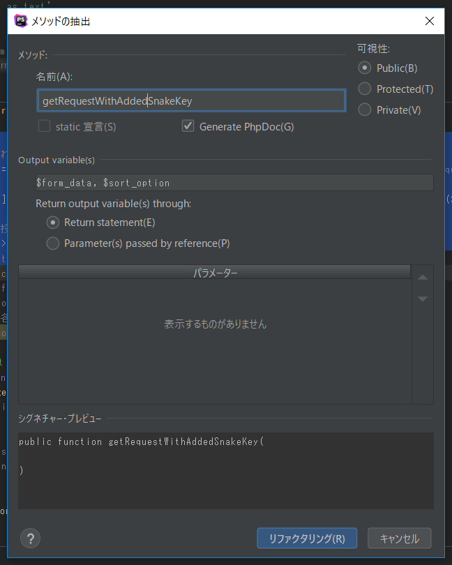 メソッドの抽出 – 公式ヘルプ | PhpStorm
