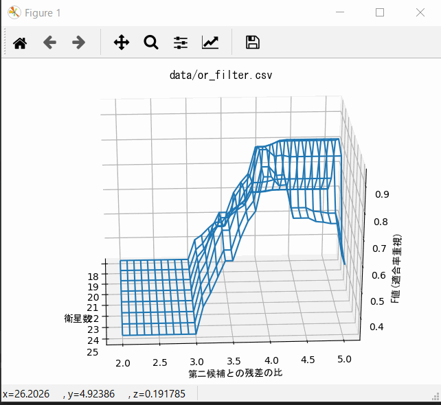 上の様なすぐに使えるサンプルコードは多く転がっているのですが、大体その場で z = f(x,y) な式を使っています。この記事ではあらかじめ外部で計算した三軸の値から三次元プロットをする方法を紹介します。