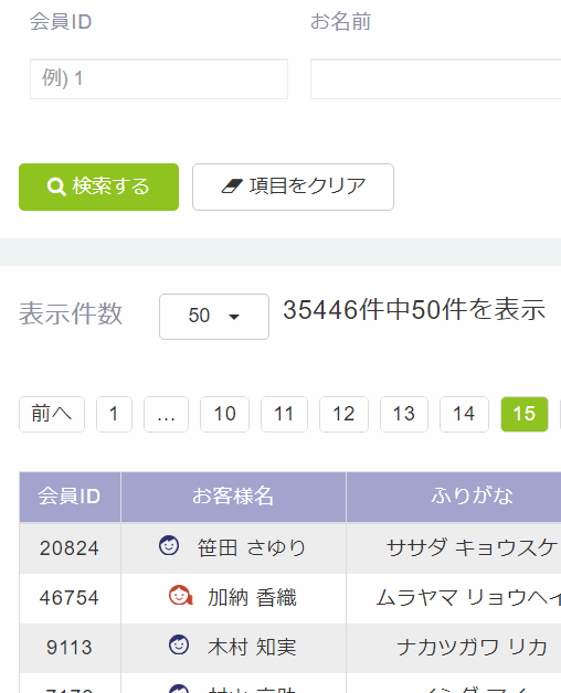 検索機能が必要とされることがよくあります。また、その検索機能を見るためにページネーション(複数ページ分割)が必要となることもあります。次みたいなものを作る必要があるわけです。