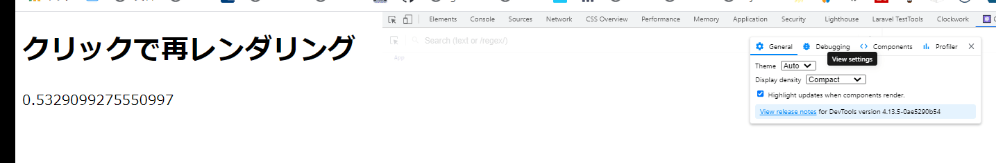 <h1 onClick={rerender}>クリックで再レンダリング</h1>